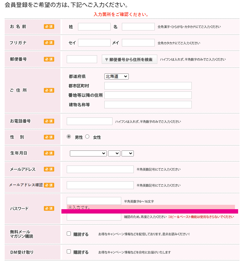 ログインを確実に行うために、会員登録では正しいメールアドレスとパスワードの入力が必要です。